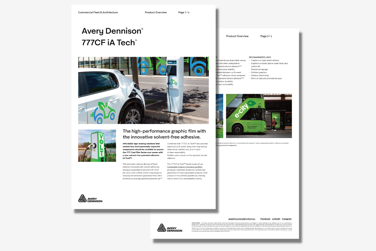 - Adesivo iA Tech™ patenteado pela Avery Dennison, livre de solventes (exceto nos filmes metálicos)